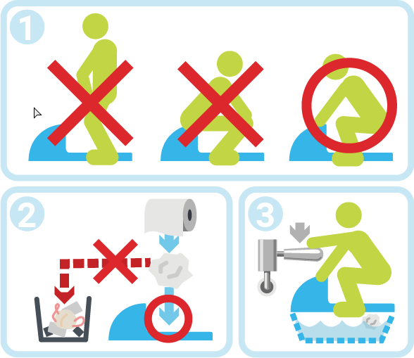 - Silakan gunakan toilet dengan posisi jongkok.
